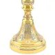 Корпус кубка выполнен из литого золота высшей пробы и покрыт слоем никеля для долговечности. Вставки из натурального лазурита, обладающего глубоким синим оттенком, придают изделию неповторимый блеск и благородство. Ювелирная филигрань подчеркивает исключительность и сложность работы.