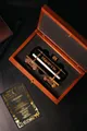 - Материалы: массив дуба, золото 24 карата, полиуретан
